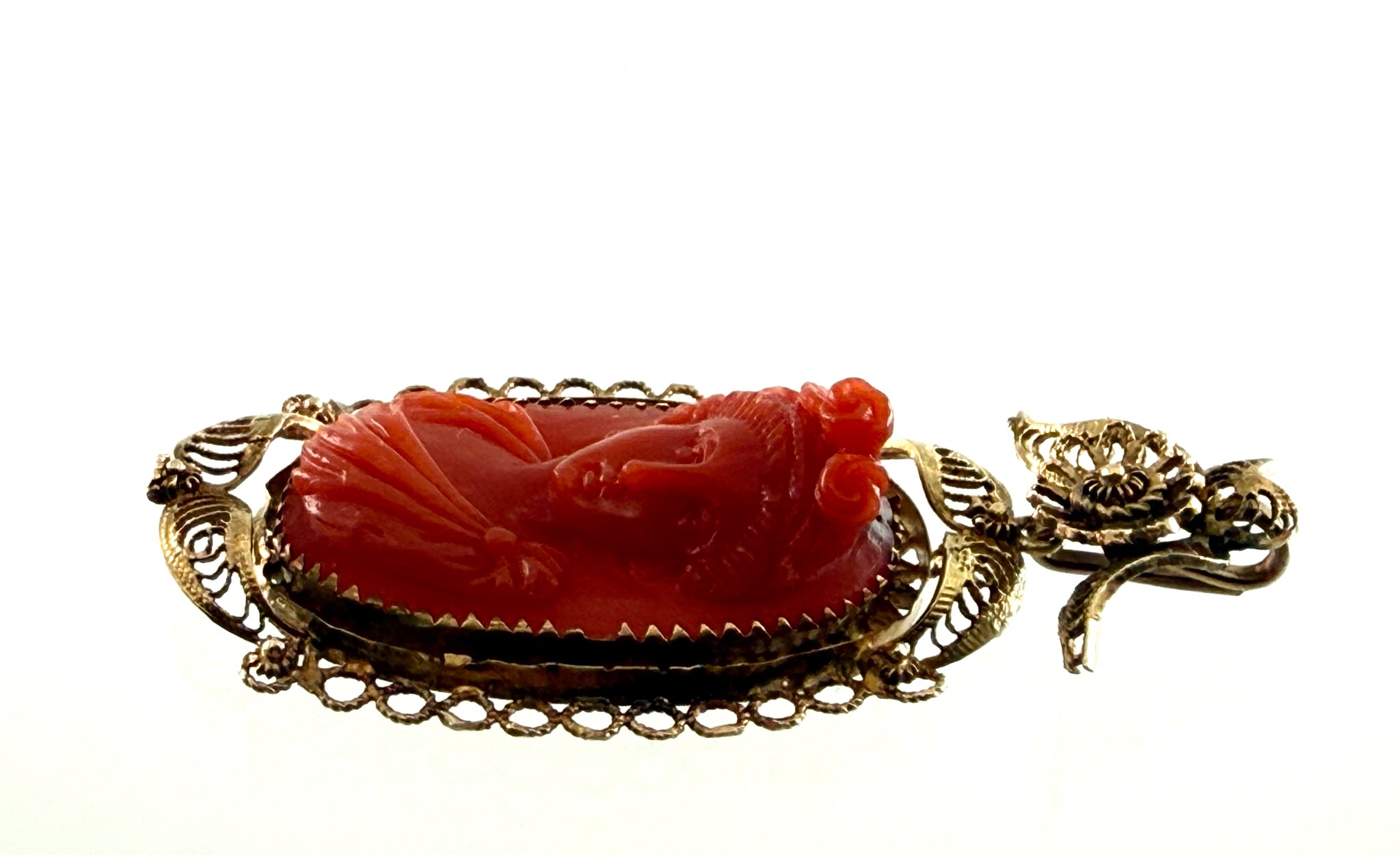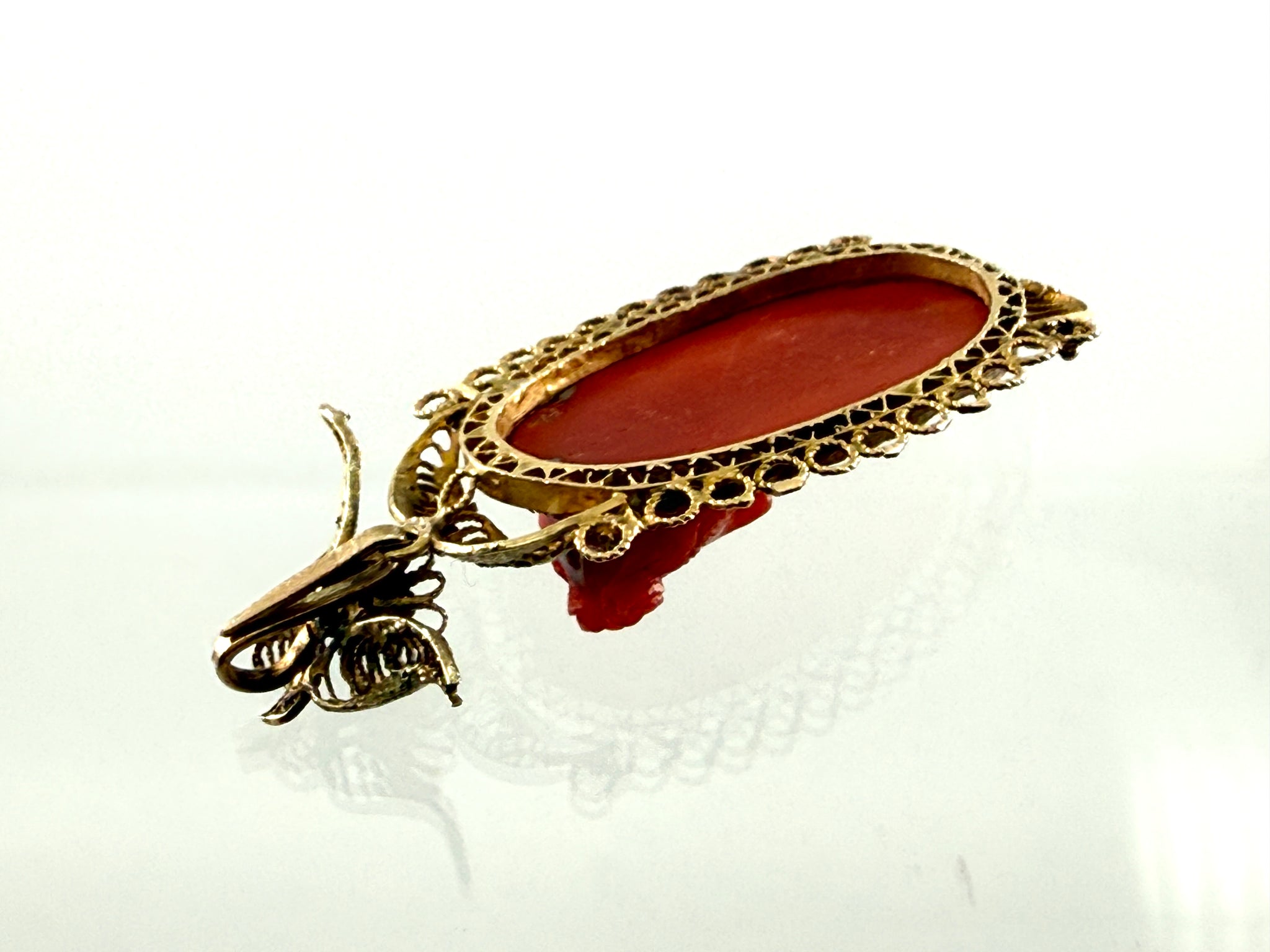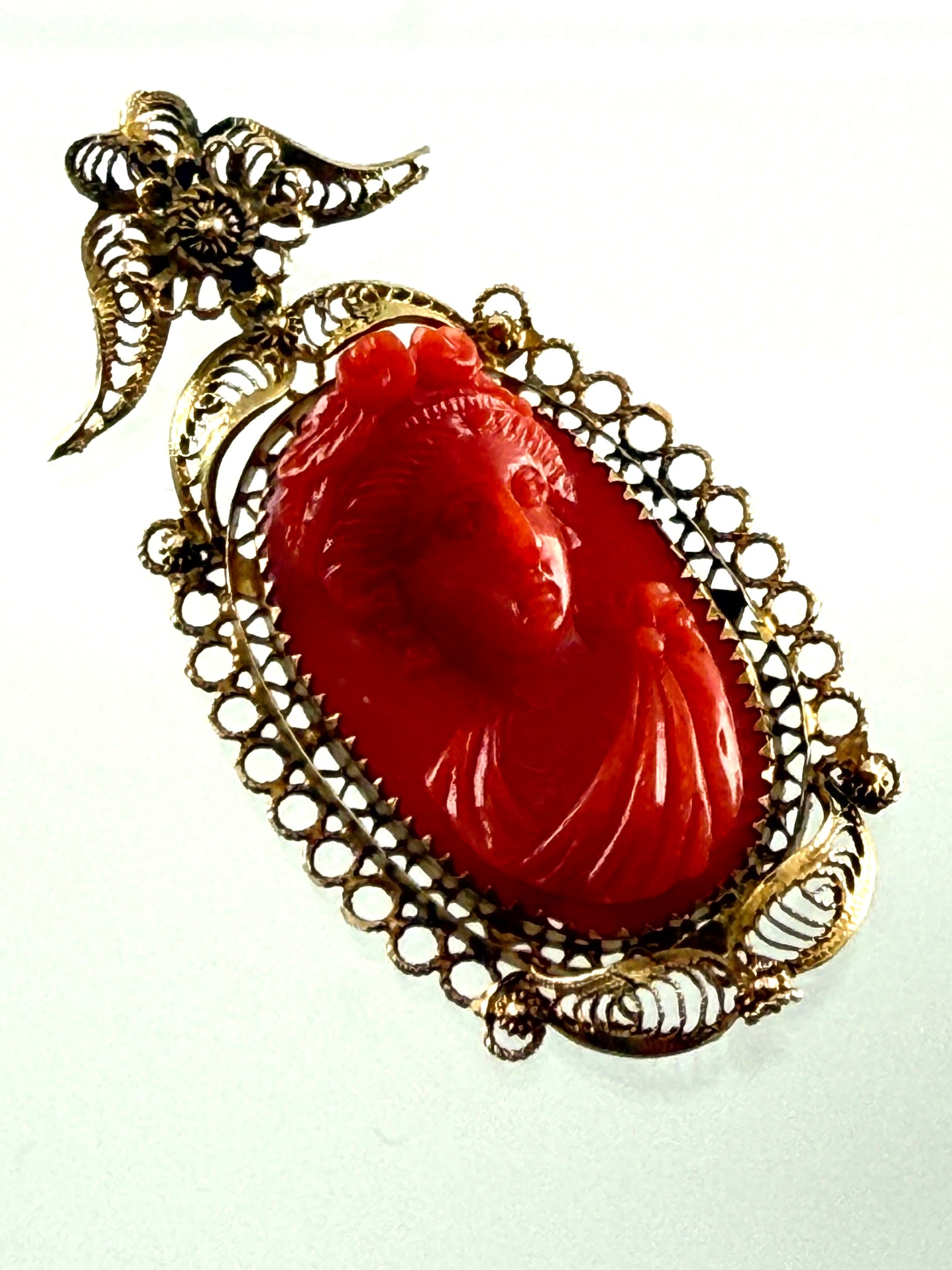 Antiker Anhänger aus Goldfiligran mit KorallenCamee, um 1830