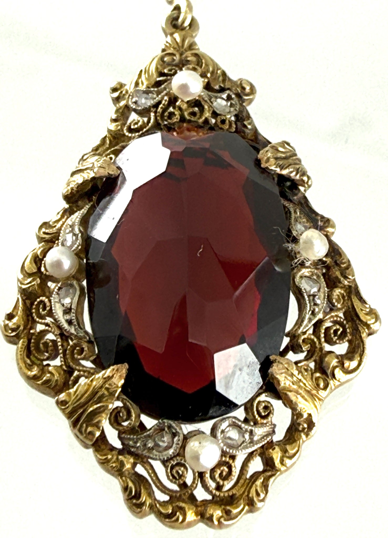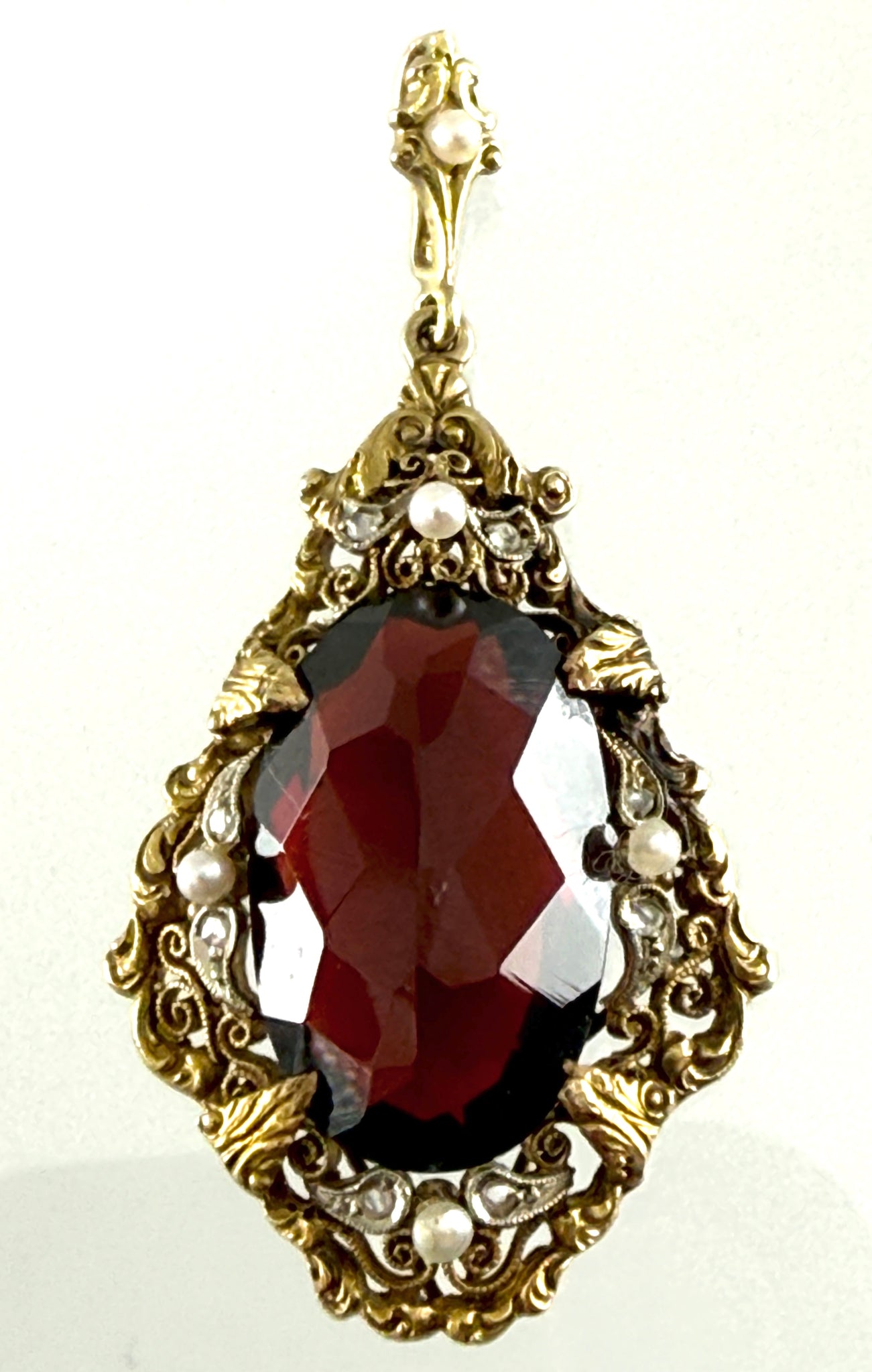 Reich ornamentierter Anhänger mit Granat, Mitte 19. Jhd.